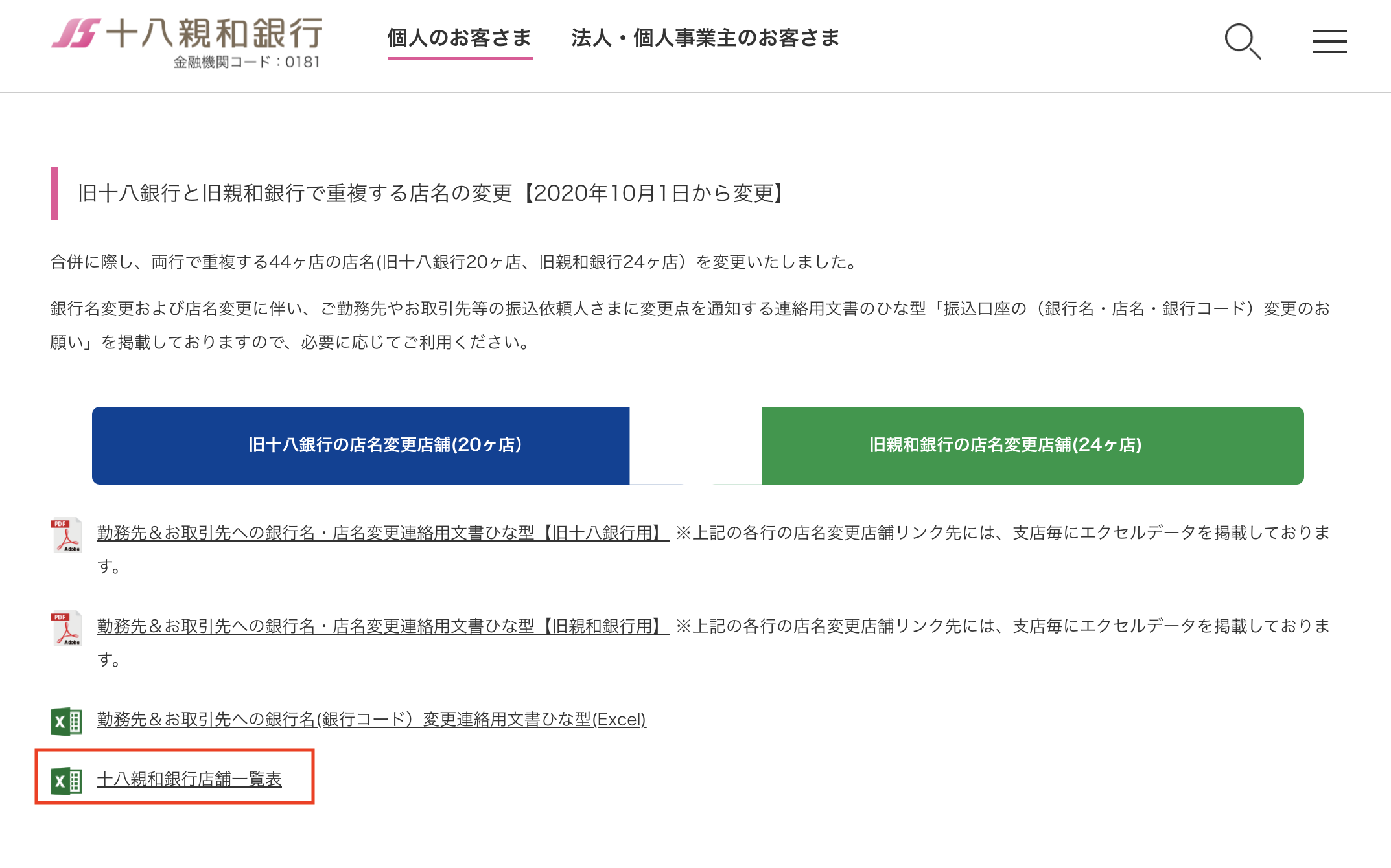 システム統合から2ヶ月弱経ちますが、今回、確定申告書を作成しているときに、還付口座を入力する際、変更になっている支店かどうか確認するのために、Excelファイルの新旧対照表を使いました。