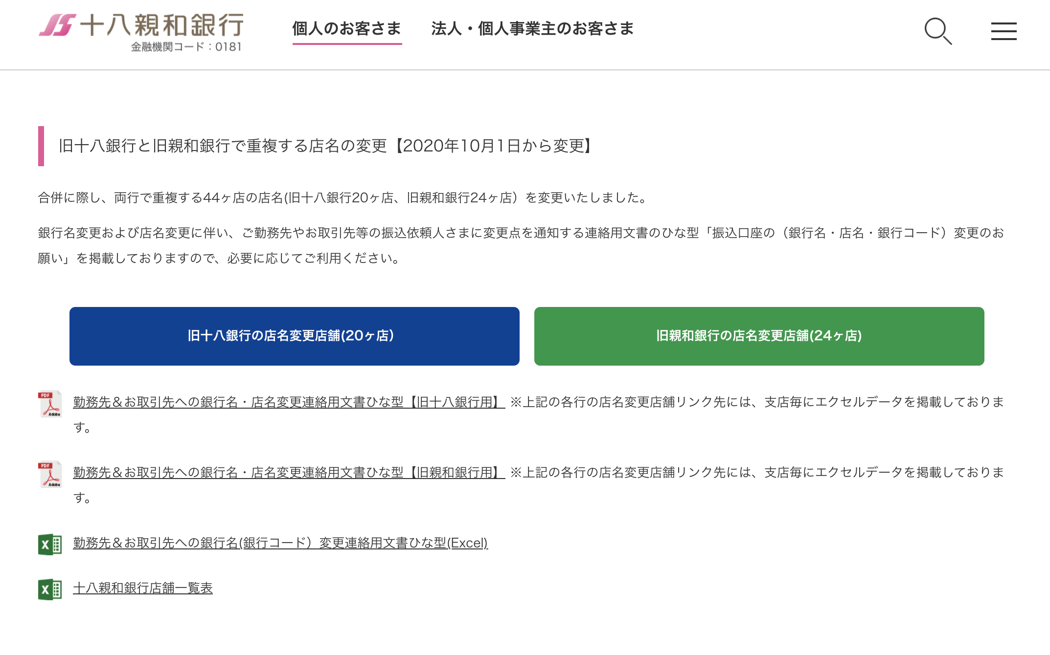 十八親和銀行ホームページより(https://www.18shinwabank.co.jp/faq/tougou/announcement/)