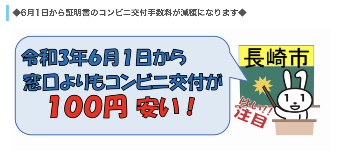 6月1日からコンビニ交付サービスの料金が安くなります(長崎市)