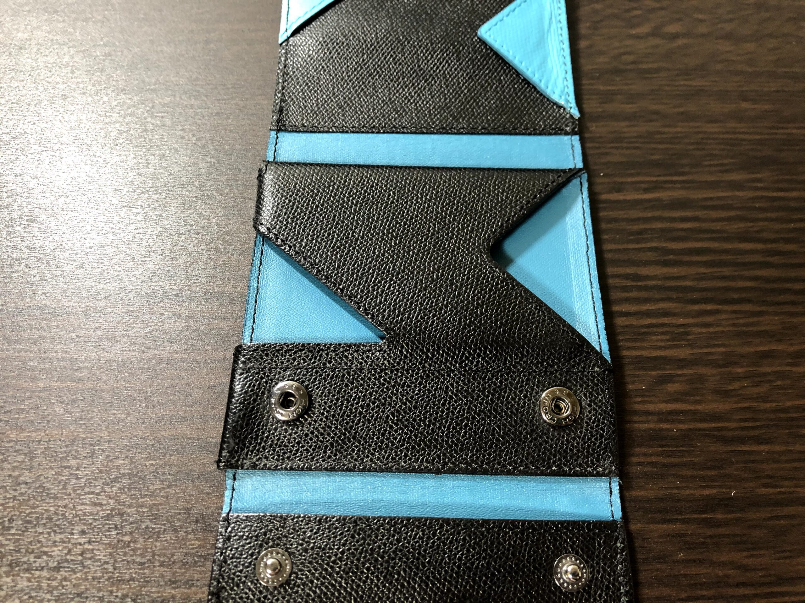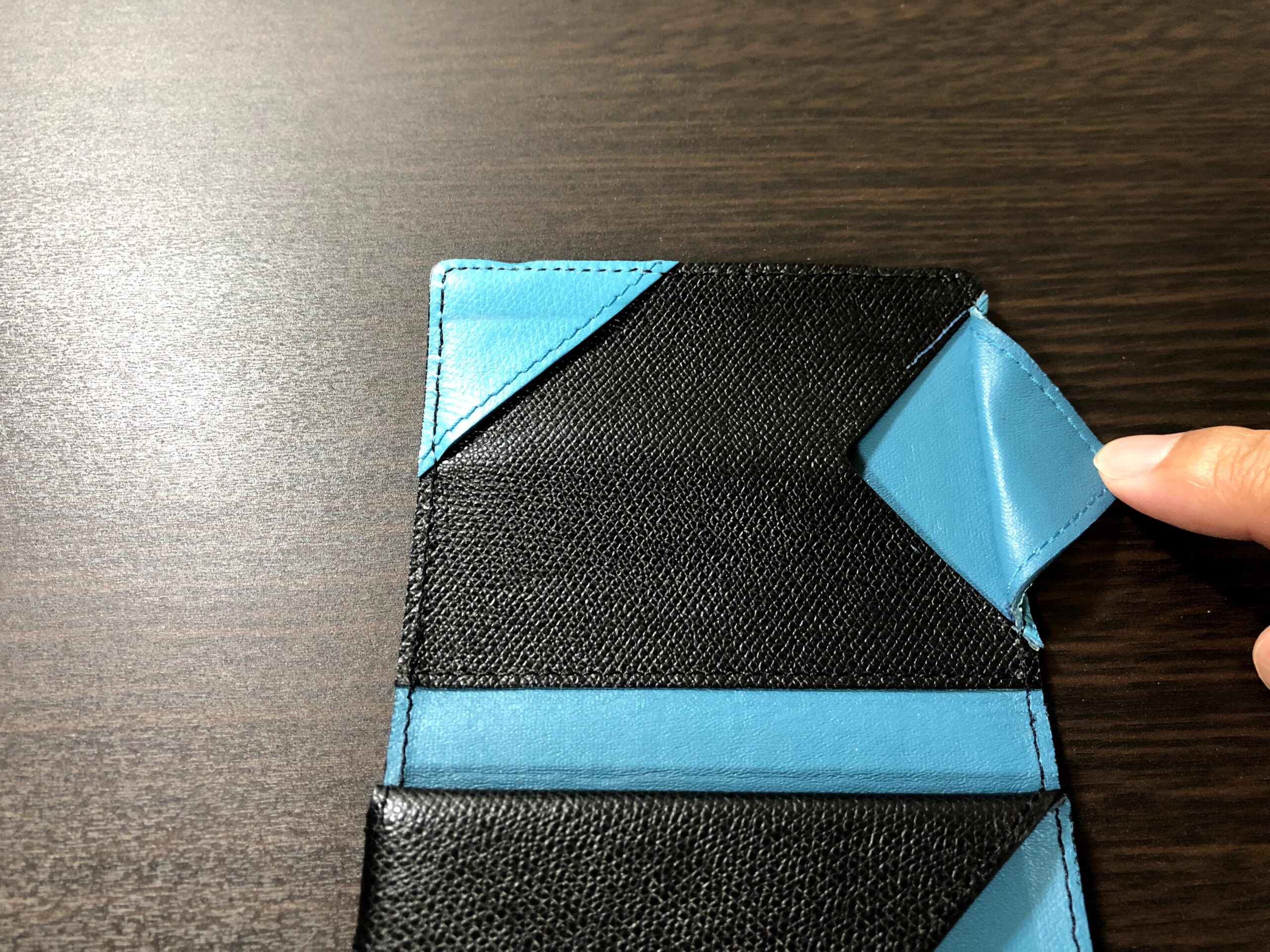 そして、この三角部分が、折りたたんだときに、革が重ならないような作りになっています。