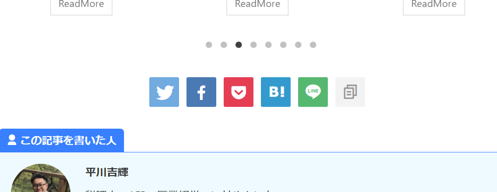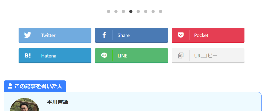 これはこれでわかりやすくていいのかもしれませんが、もう少しシンプルにしたい場合は、先程の画面で「SNSボタンをシンプルにする」にチェックを付けます。