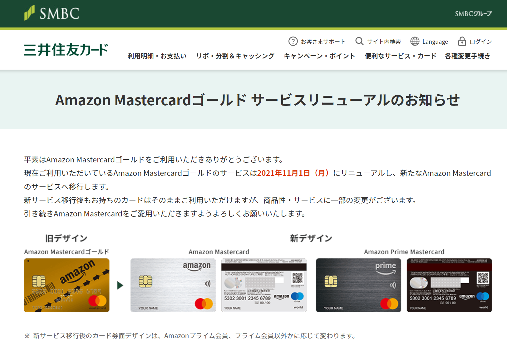 2021年11月1日からAmazon MasterCard ゴールドのサービスがリニューアルされます。