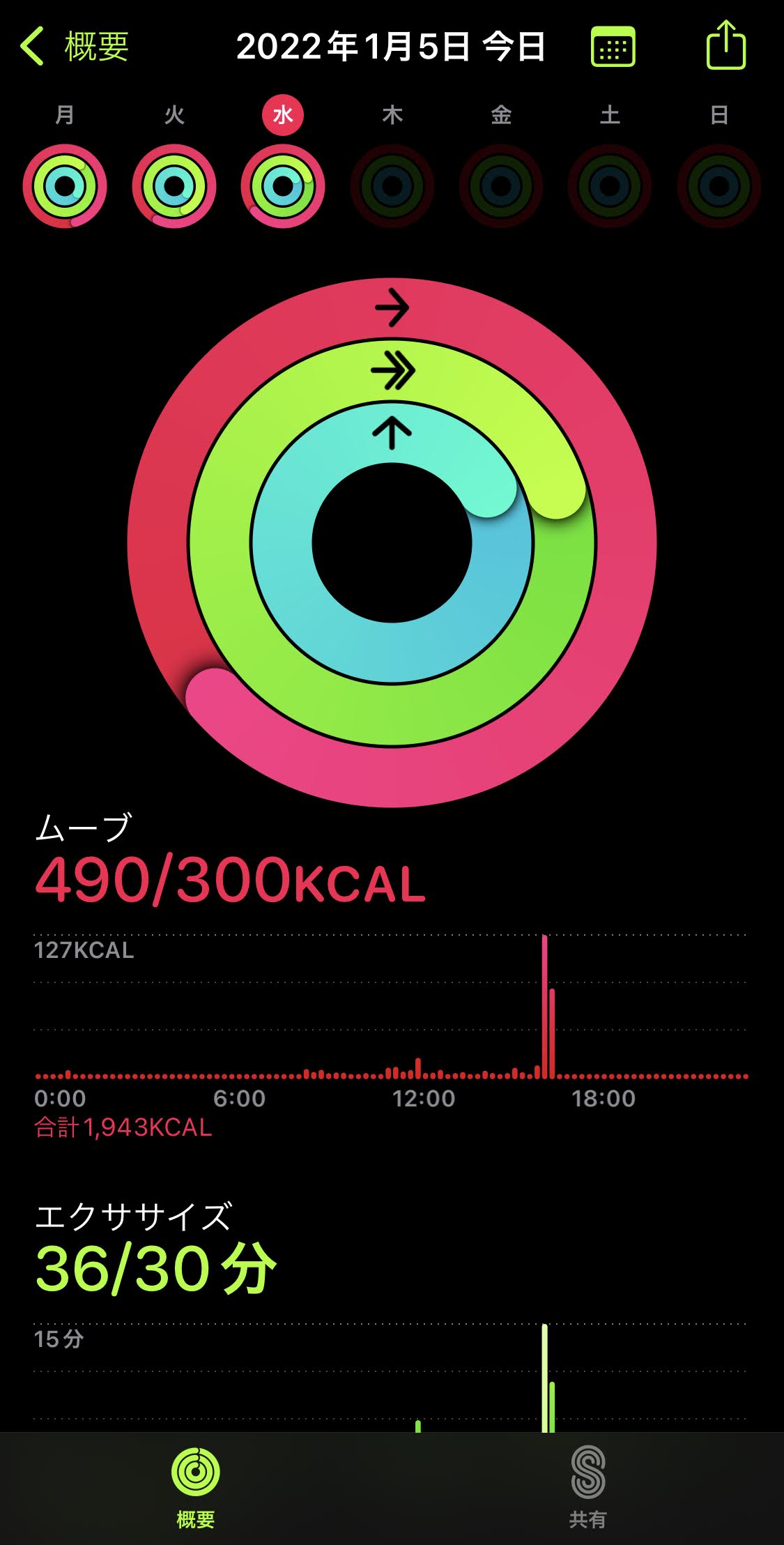 アプリの下の方にある「共有」をタップします。