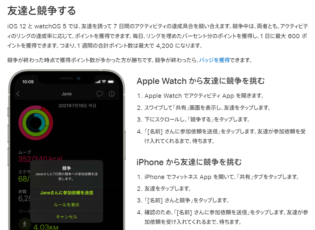 AppleWatchのアクティビティ情報を共有することができます。