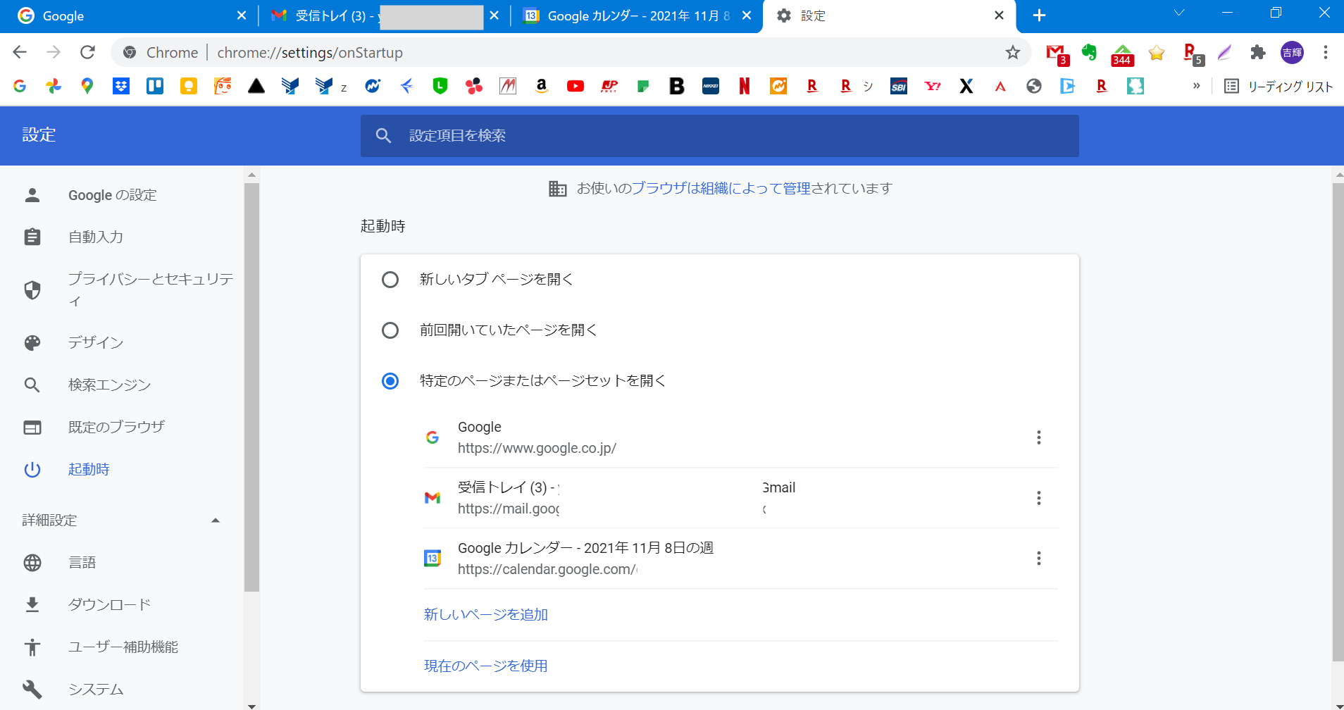次からGoogle Chromeを起動させると、設定したページが開くようになります。