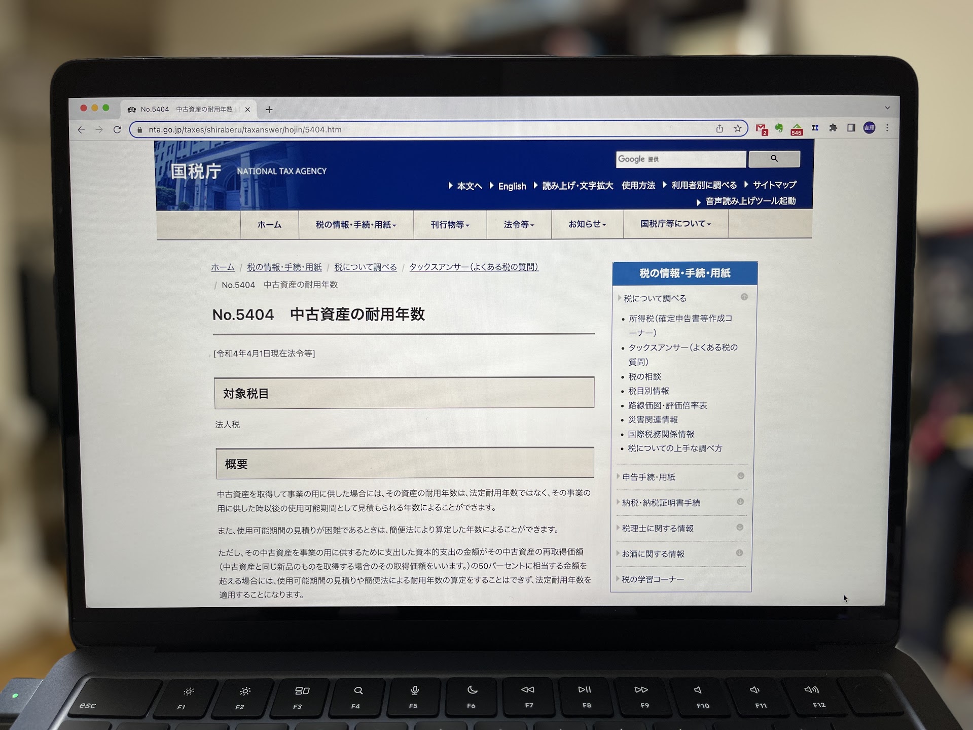 事業で利用する中古資産を購入した際の参考にしていただければと思います。