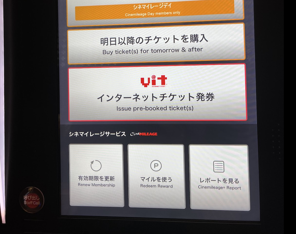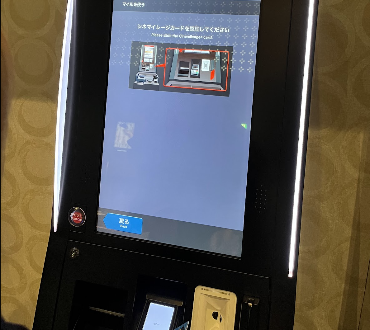 マイルの交換は劇場内の発券機で手続きします(引換券発行)。