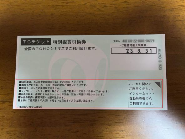 使い方を確認してなんですが、こちらのチケットをお持ちだとしても、2023年1月31日までであれば、「イベント割 ムビチケ作品共通券」を利用したほうがいいかもしれませんね。1,200円で鑑賞できますので。