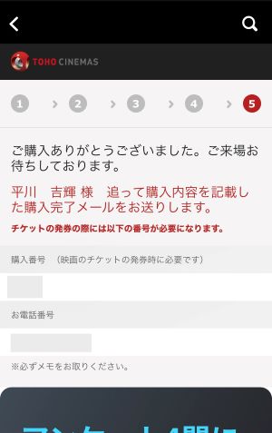 TOHOシネマズのサイトかアプリでチケットを購入するタイミングでチケットの下の部分をめくったところにある番号を入力するだけです。