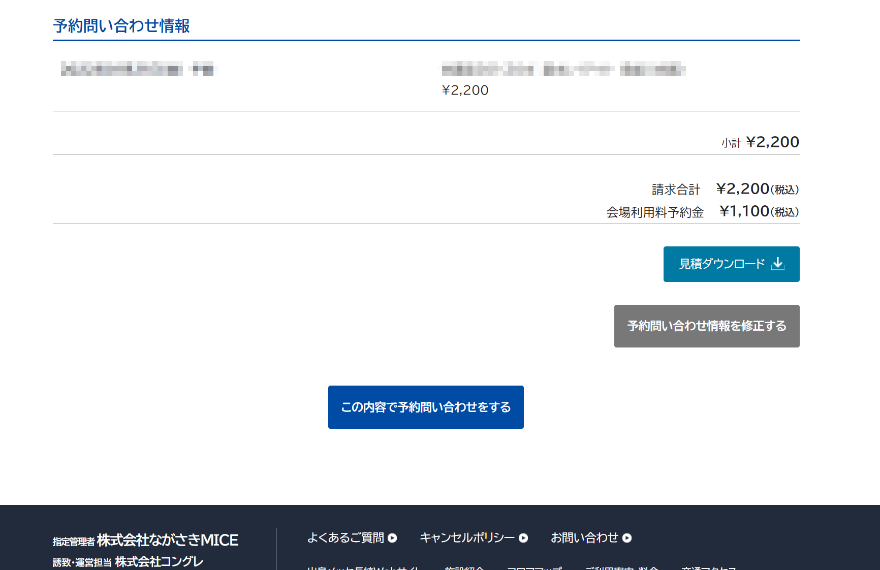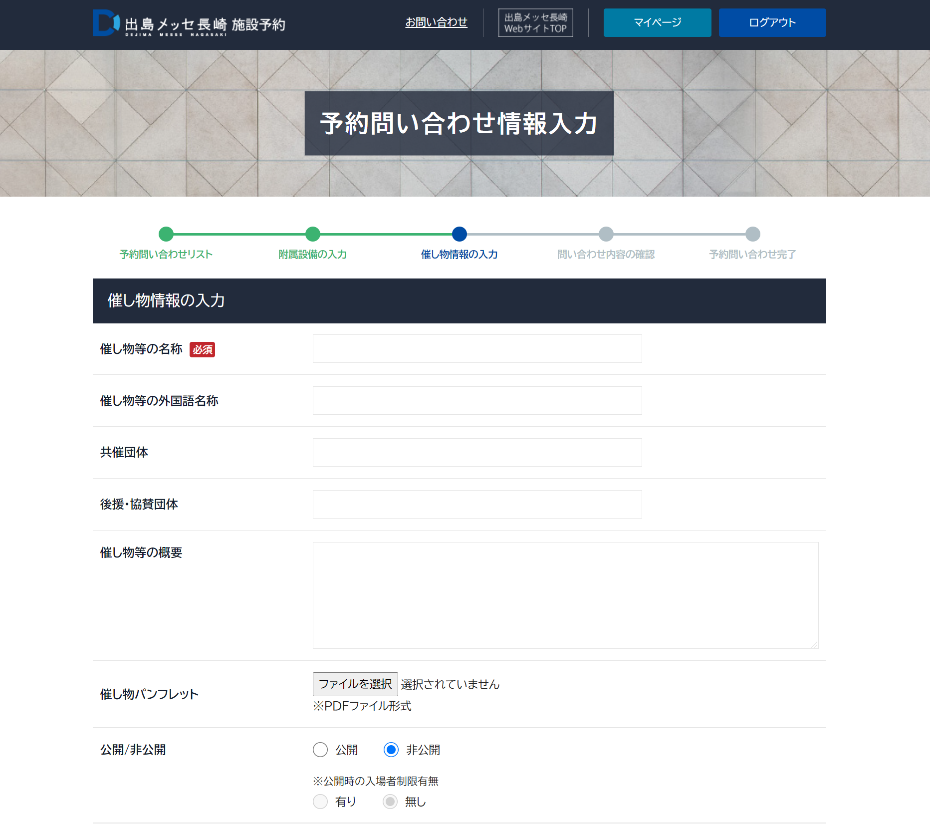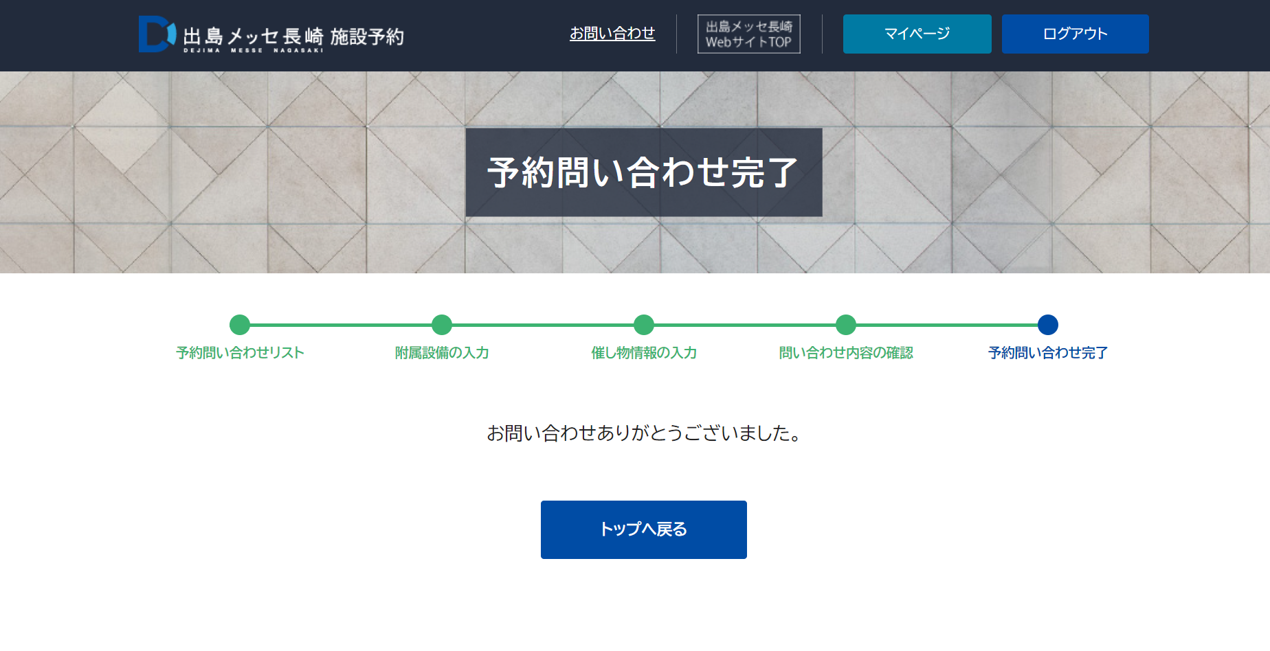 この度は出島メッセ長崎へ施設予約のお問合せ(仮予約)をいただき誠にありがとうございます。