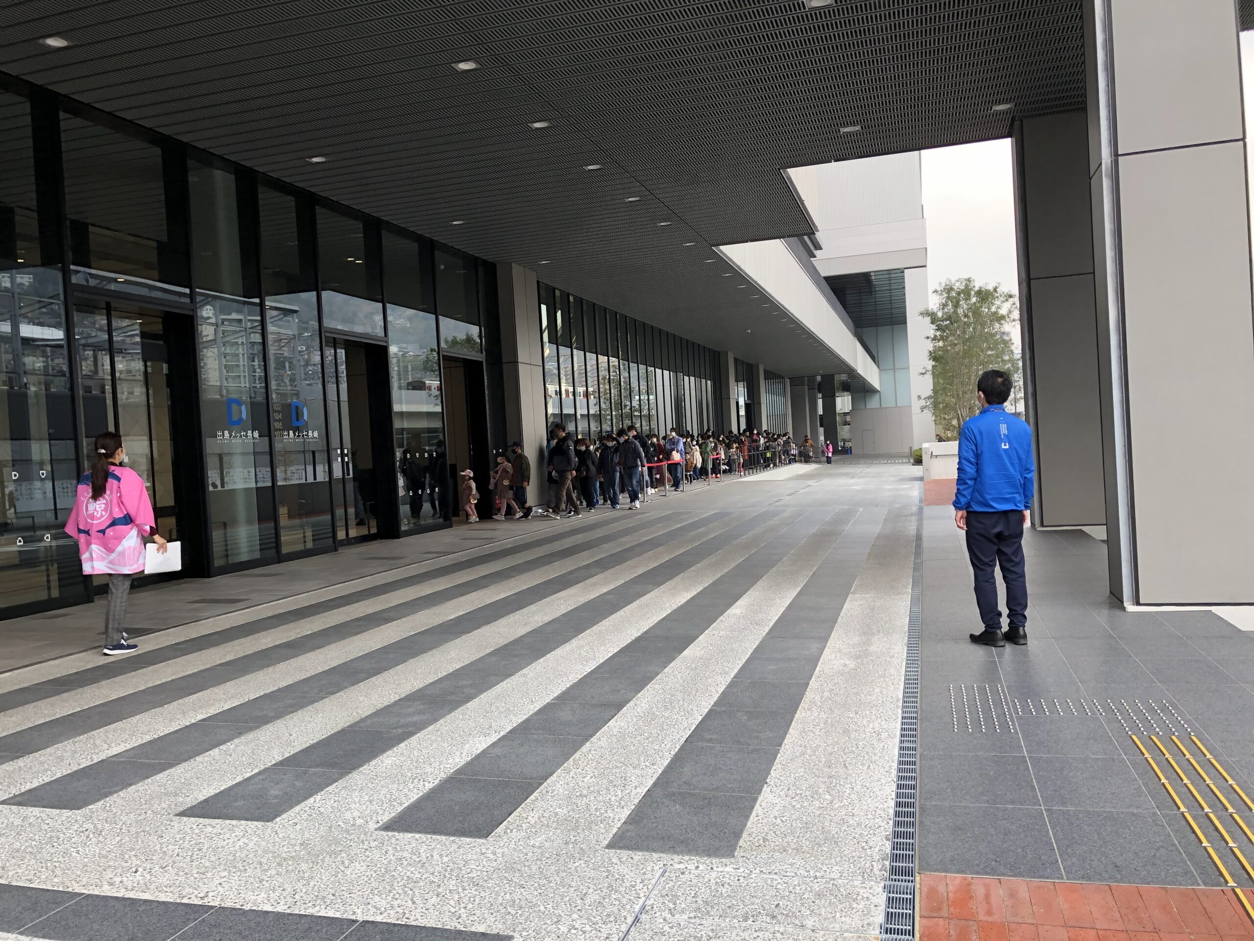 上の娘は、各時間10名限定の「クジラのハーバリウム」のワークショップ参加が希望だったのですが、到着したときにはすでにたくさんの人が並んでおり、整理券配布もすでに終了している状況でした。