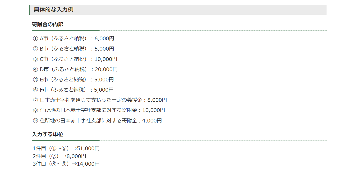 まとめることができるのは、寄附金の種類ごとにはなりますが、ふるさと納税だけということであれば、それらをまとめて入力することができます。