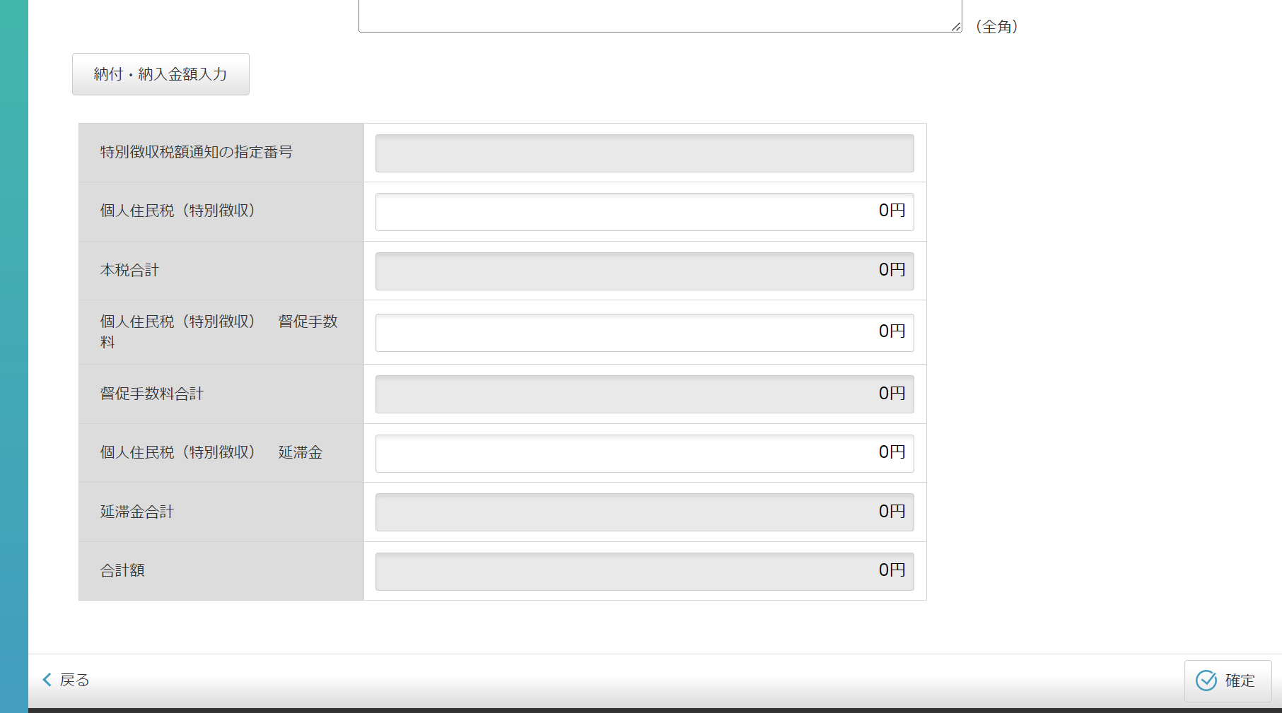 「納付・納入金額入力」を選択し、納付する金額を入力します。