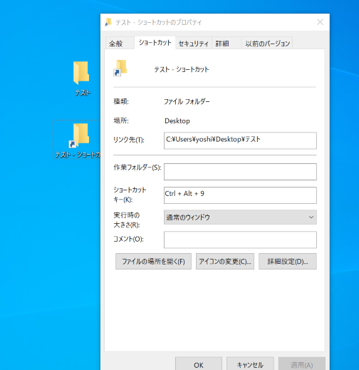 私は今はフォルダを使わないようにしており、なおかつデスクトップには何も置かない主義なので、多用しなくなりましたが、以前はいくつかのフォルダを開くためにショートカットキーを設定していました。