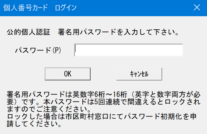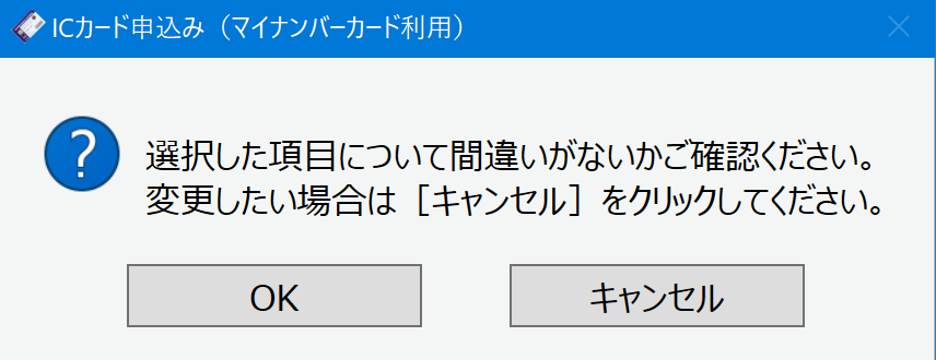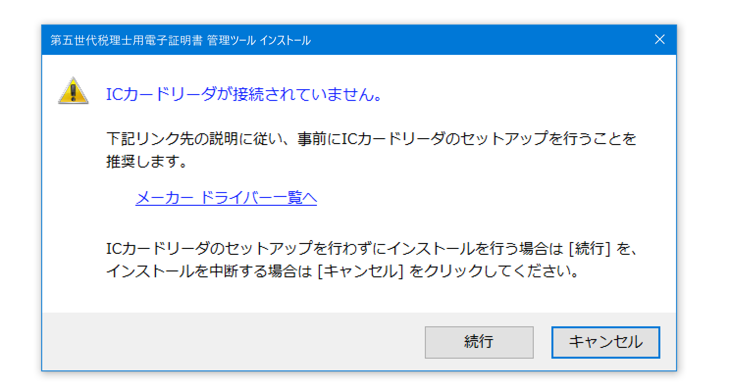 ちなみに、ICカードリーダにつないでいない状態でクリックすると、下記のようなメッセージがでます。