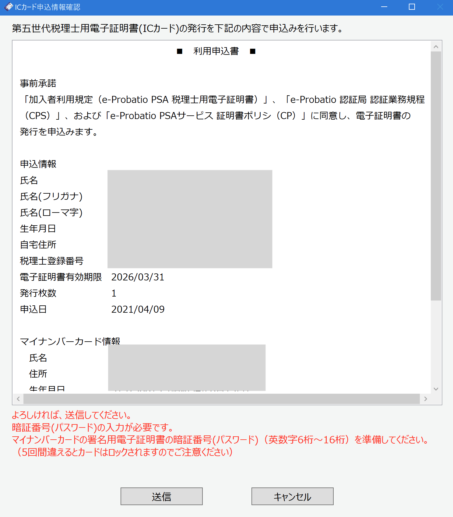 先日、日本税理士会連合会より電子証明書利用申込書類が届きました。