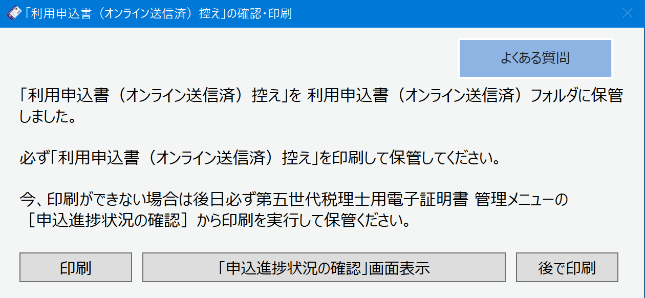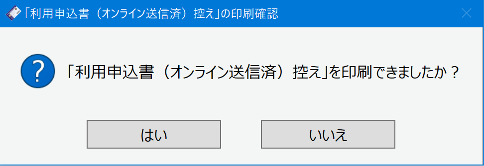 パスワード入力し進めると、申込書控えの印刷画面へ。