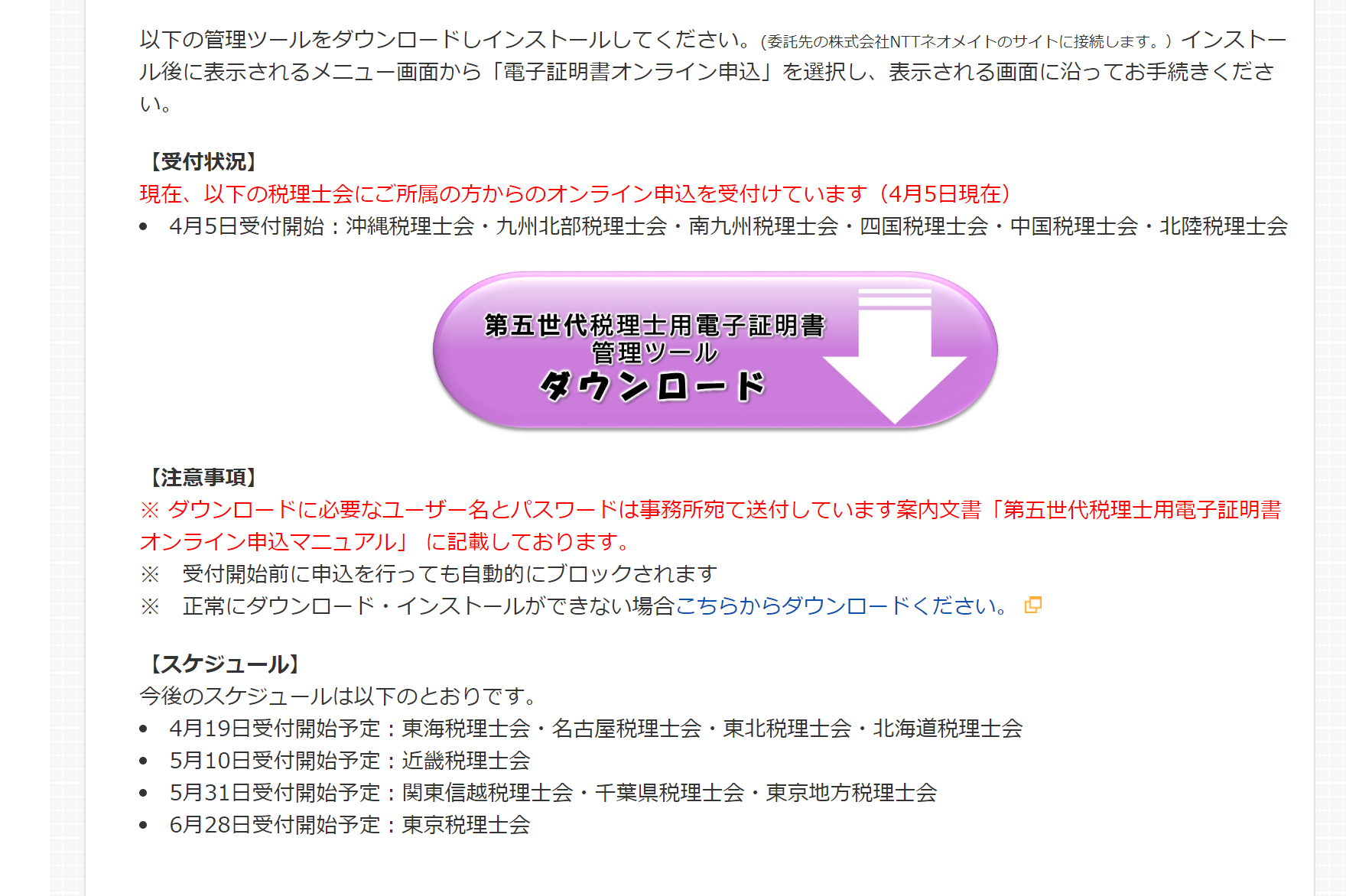 ちなみに、4月5日受付開始の税理士会は、沖縄税理士会・九州北部税理士会・南九州税理士会・四国税理士会・中国税理士会・北陸税理士会です。