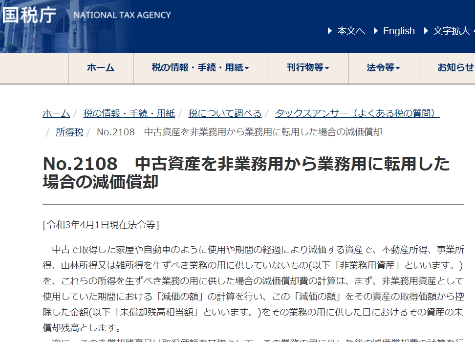 本日は、非業務用の固定資産を業務用に転用した場合の減価償却費の計算方法について、記事にしたいと思います。