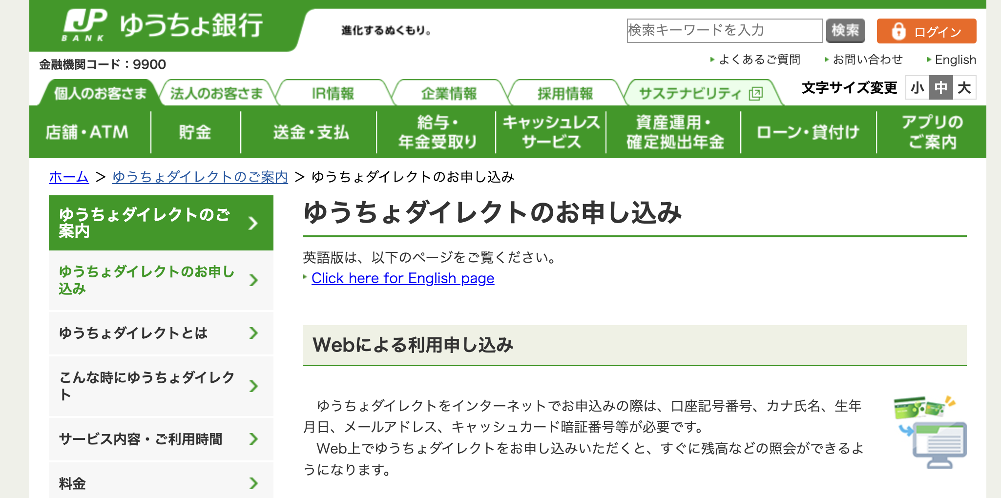 ゆうちょ銀行(法人口座)のゆうちょダイレクト利用について