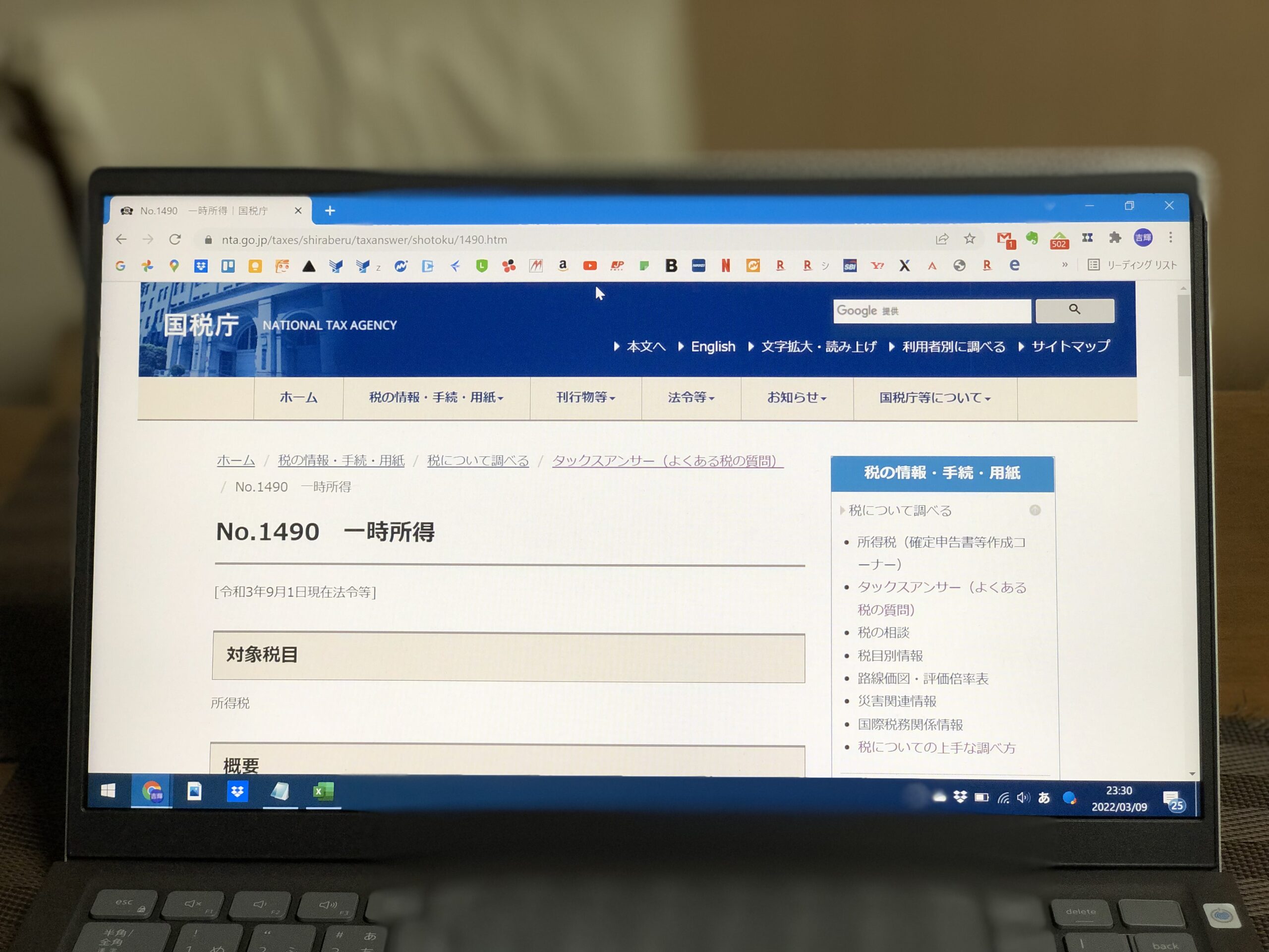 現行の所得税制では、所得の区分を10種類に分類しています。