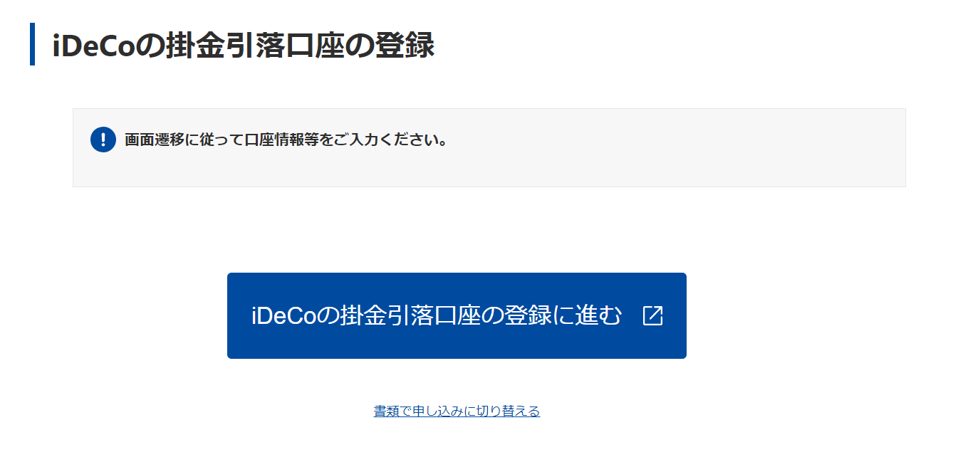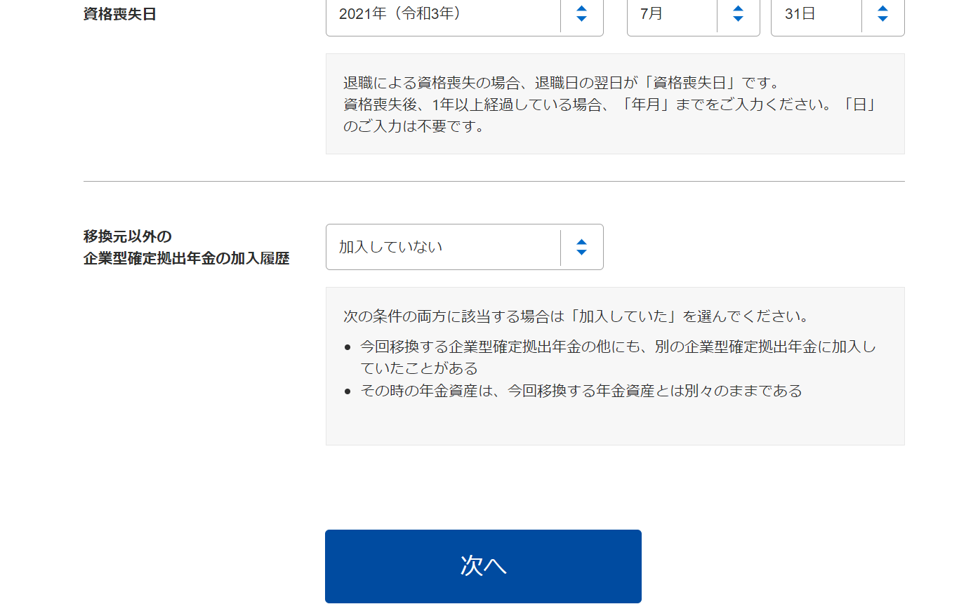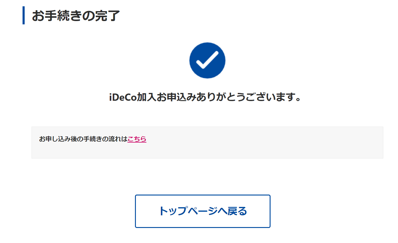 おそらく、しばらくすると何かしらの案内資料が届くとのことでしたが、退職後はここのiDeCoに移管しようと決めておりましたので、書類が届く前ではありますが、早速手続きしてみることにしました。