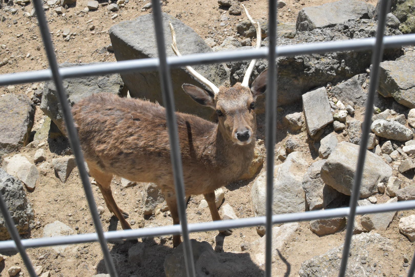スロープカーで中腹駐車場まで戻り、鹿と猿への餌やり体験を。