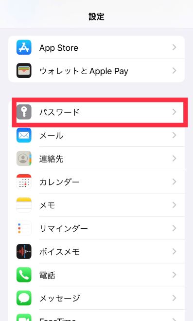 設定アプリのパスワードを選択。