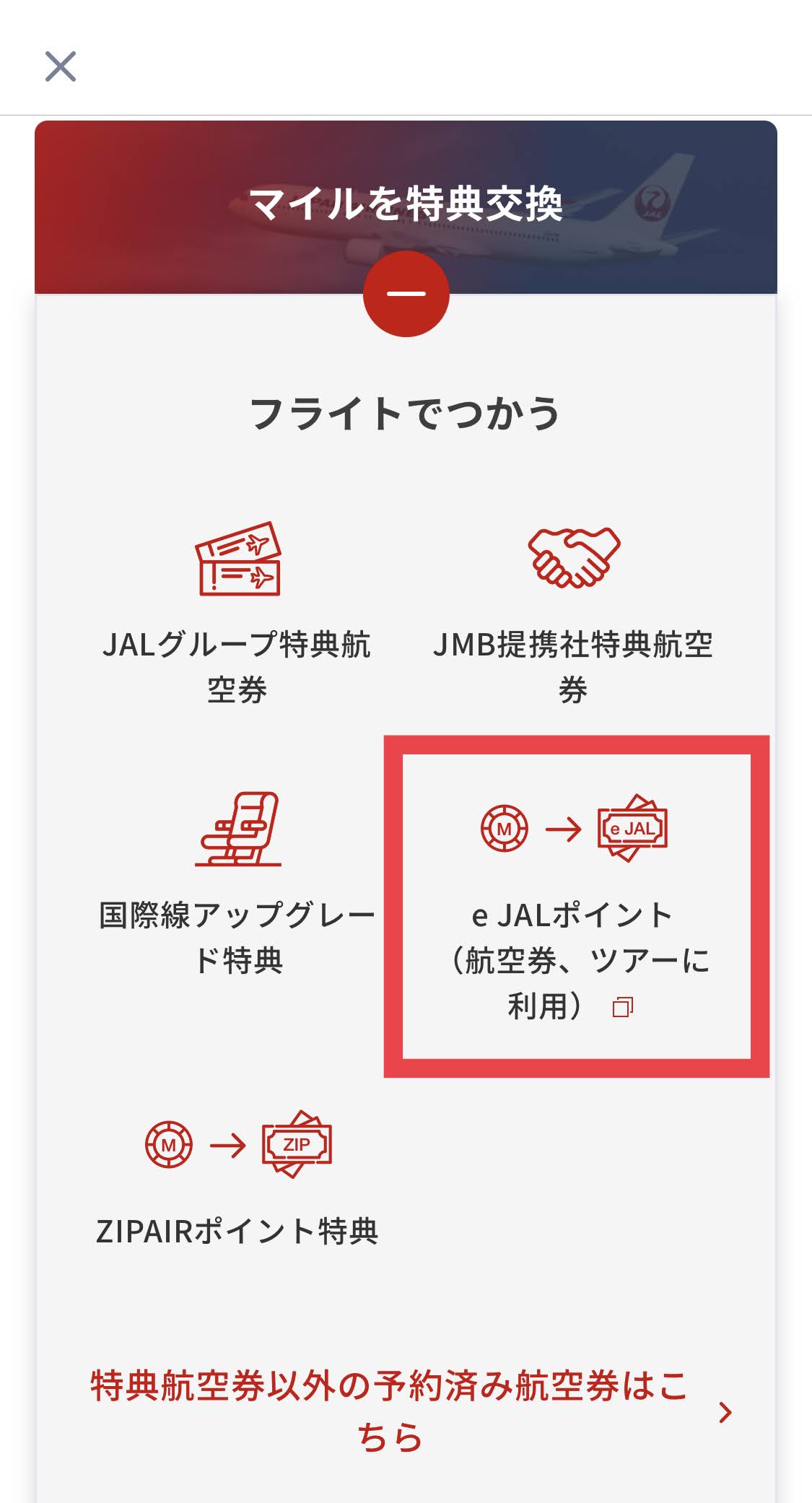 「eJALポイント(航空券、ツアーに利用)」をタップ。