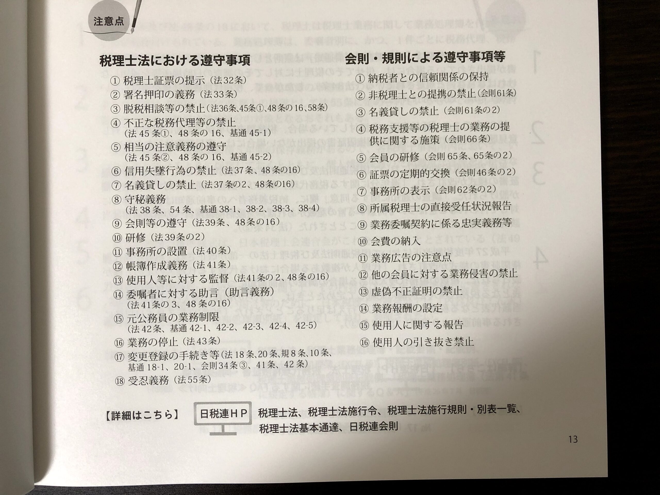 入会式の際にもらった資料に何か載ってなかったかなと思い、見てみると、「税理士法における遵守事項・留意点」というページにこのような記載がありました。