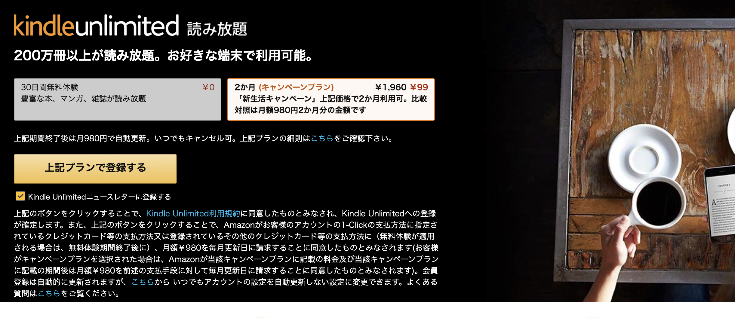 現在、Kindle Unlimitedの「新生活キャンペーン」が開催されています。