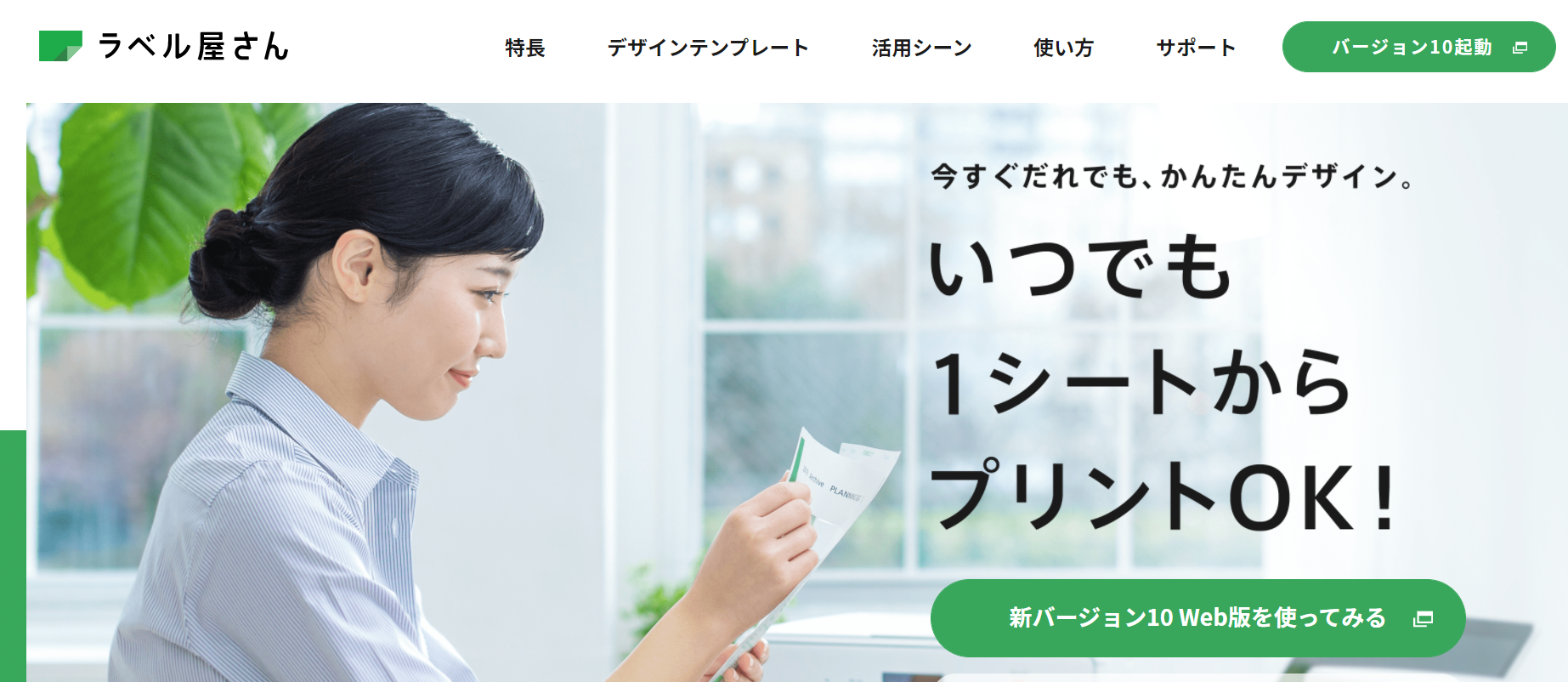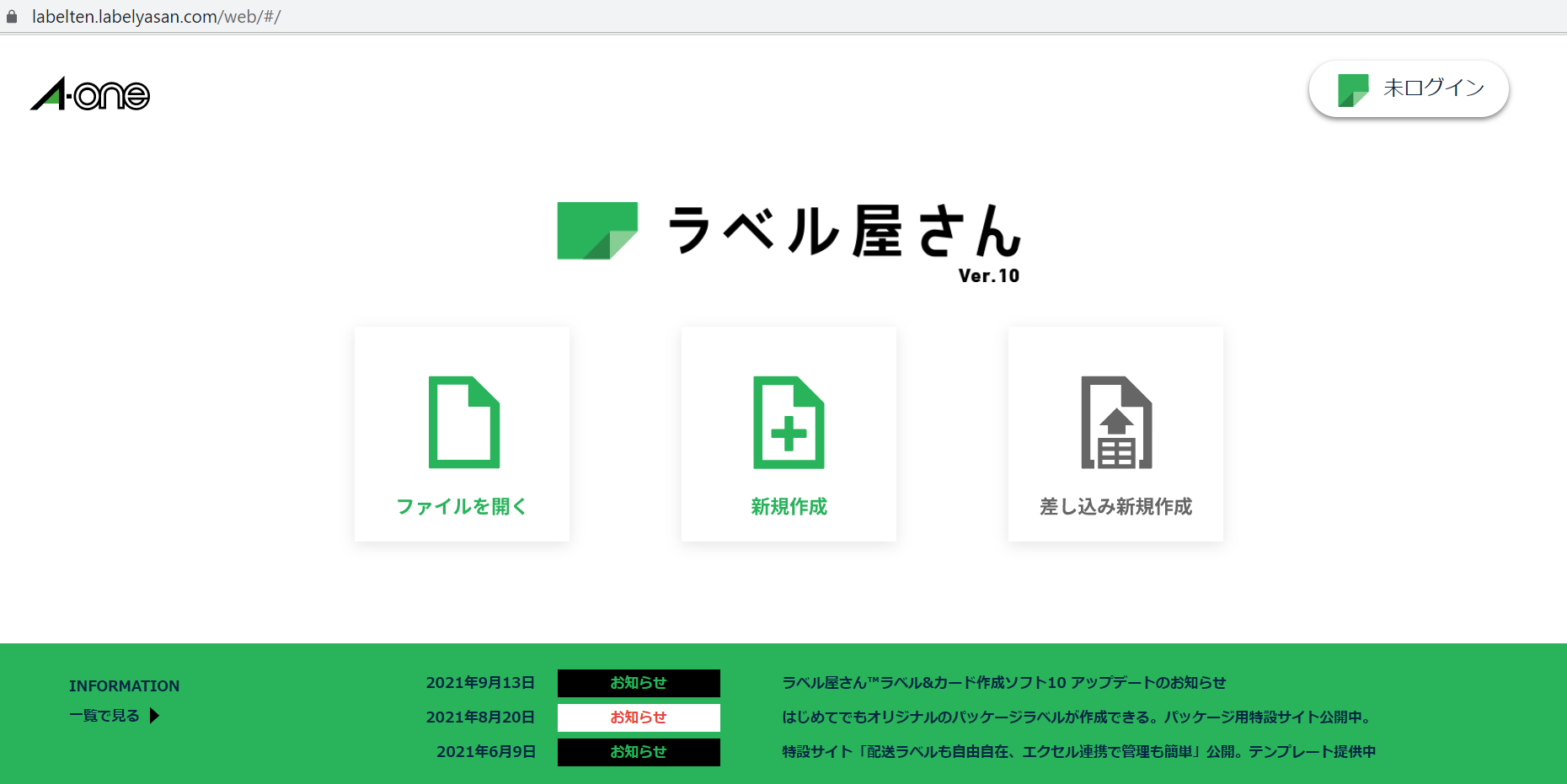 「新バージョン10 Web版を使ってみる」をクリックし、作成したデータを保存しておけば、「ファイルを開く」から再度同じデータを利用することができます。作成されるデータは、3Mのラベルシール「A-one」に対応したものになっております。