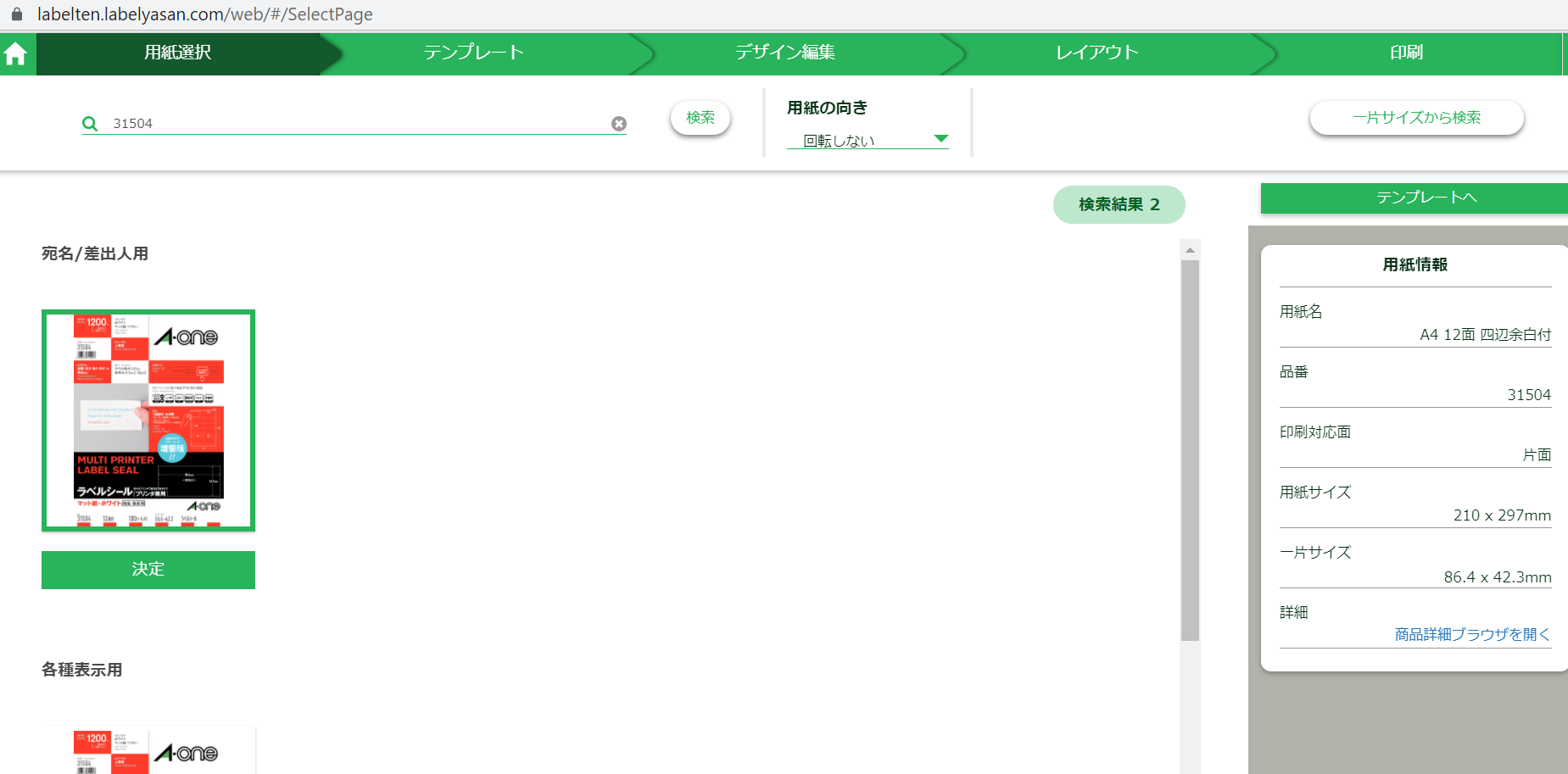 新規作成の場合、「A-one」製品の品番を入力することで、その製品に対応したサイズのデータを作成することが可能です。