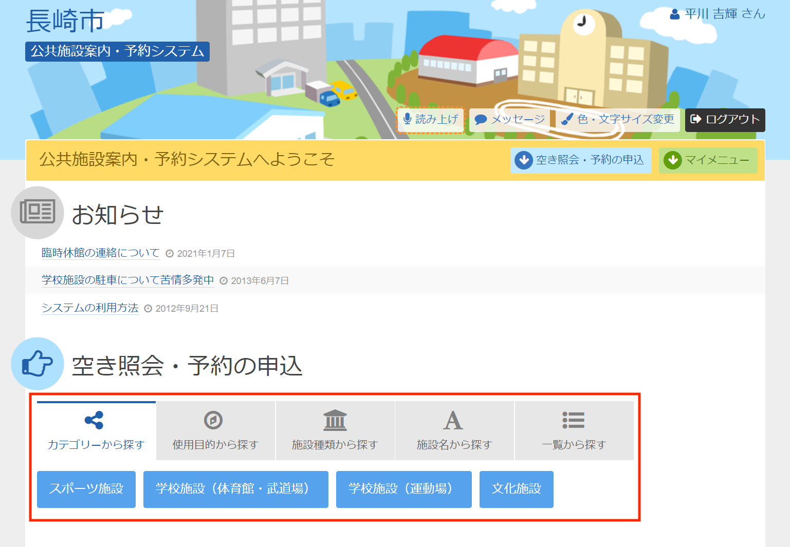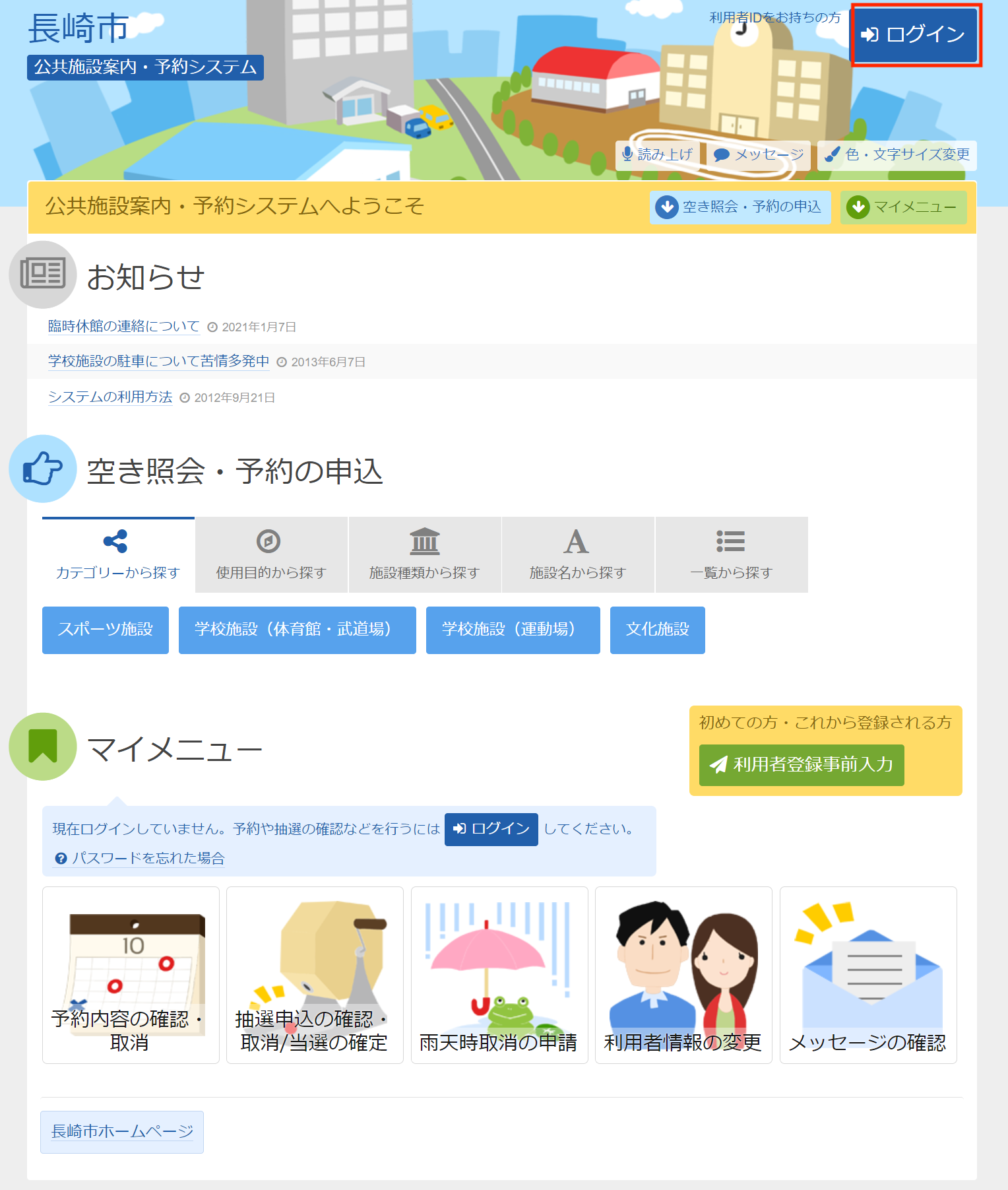 長崎市公共施設案内・予約システムの予約方法について