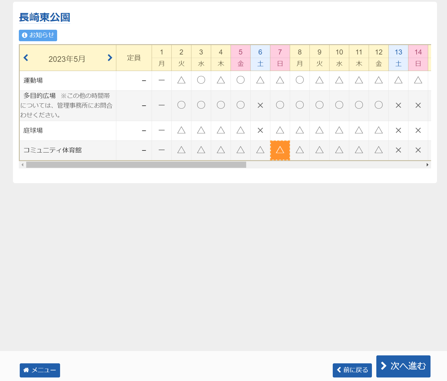 利用したい日にちを選択し、「次へ進む」で進めます。