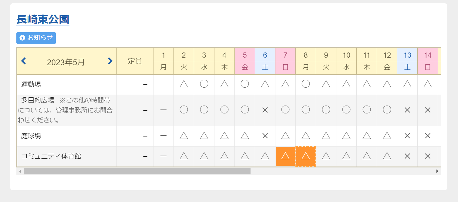 予約については、利用月の1月前の21日の8時~利用日2日前の21時まで申込みができます(施設によっては、利用月の1月前の21日から利用日当日まで申込み可能なところもあります)。