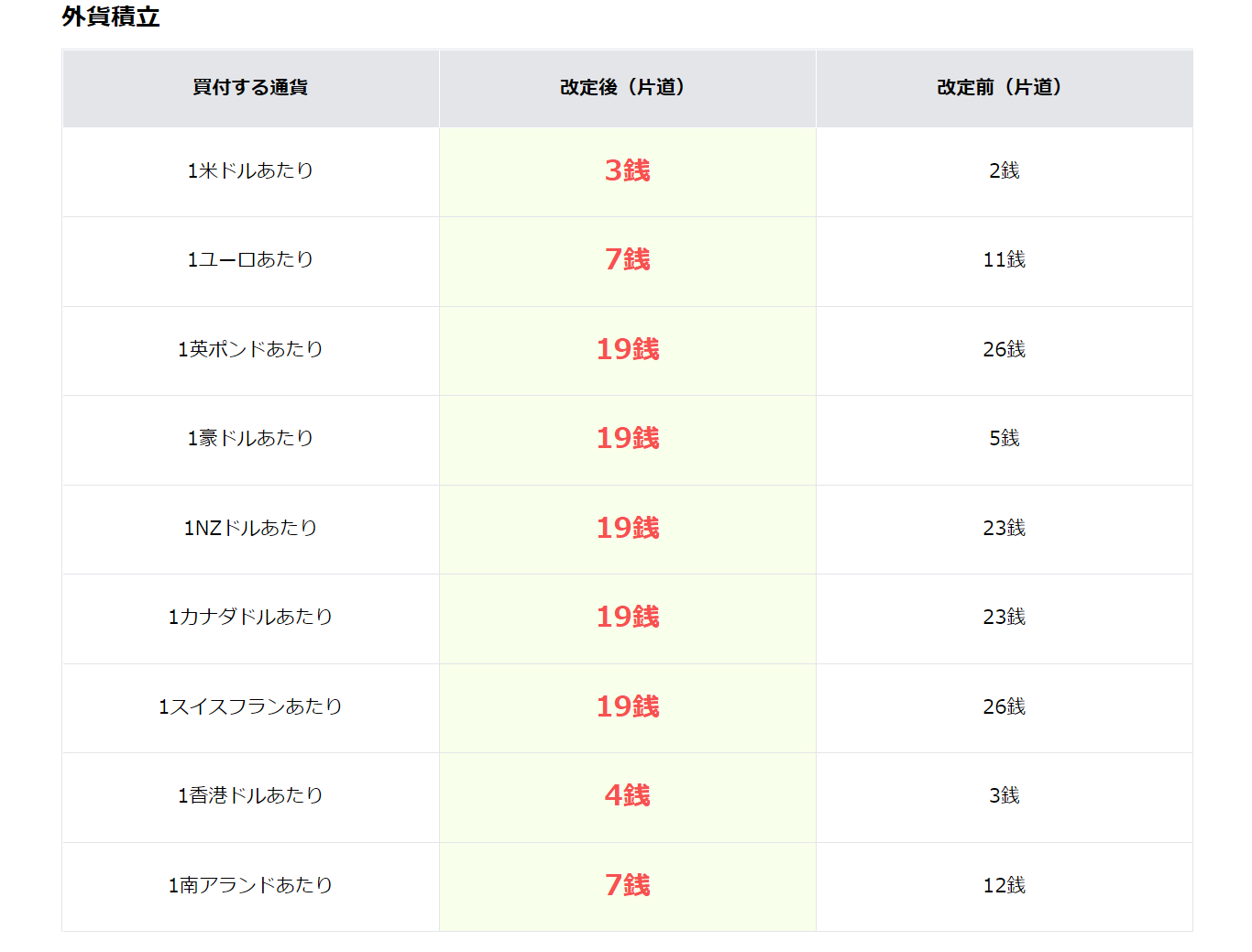 1米ドルあたり(片道)、4銭 → 6銭 - 外貨積立