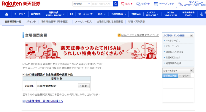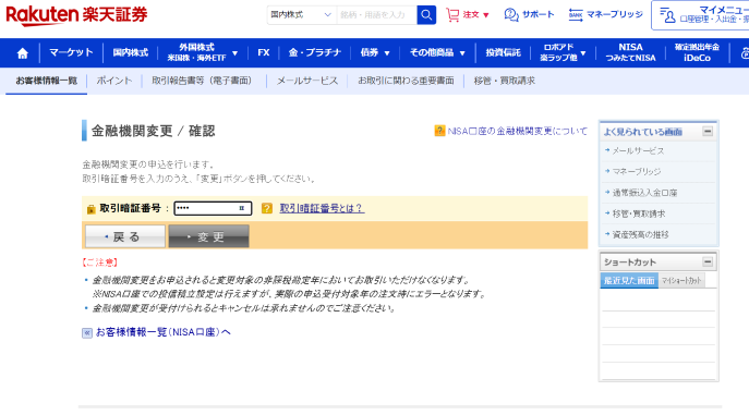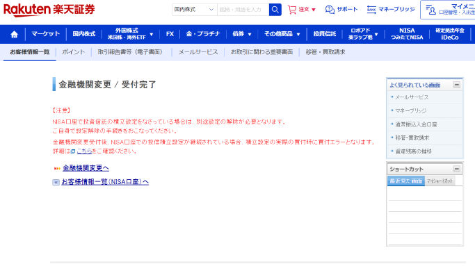利用中(楽天証券)の金融機関での手続き