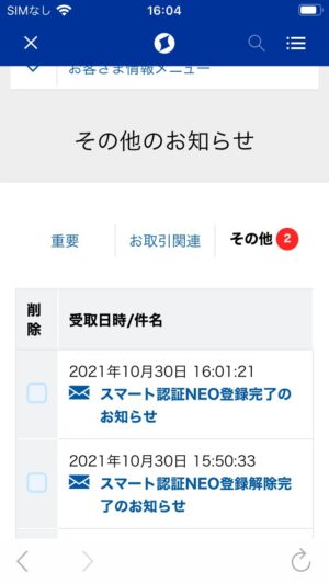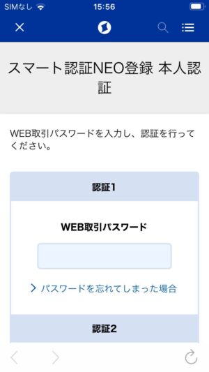 SIMなしiPhoneでも、スマート認証NEOの登録ができました。
