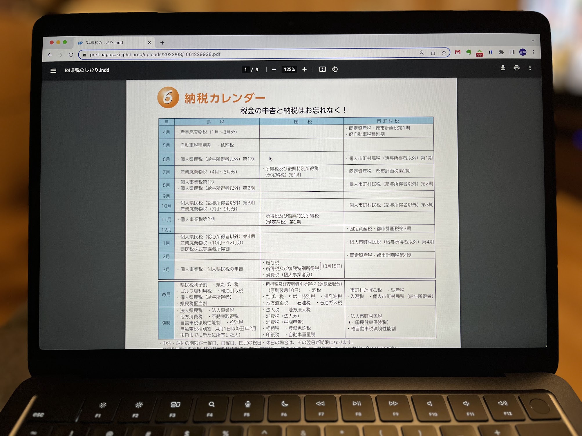 長崎県の方であれば、県税のしおりに「納税カレンダー」というものがあります。
