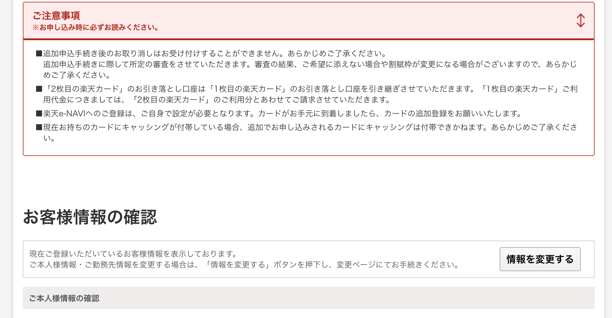 本日は、楽天カードの2枚目カード申込みの手順について記事にしたいと思います。