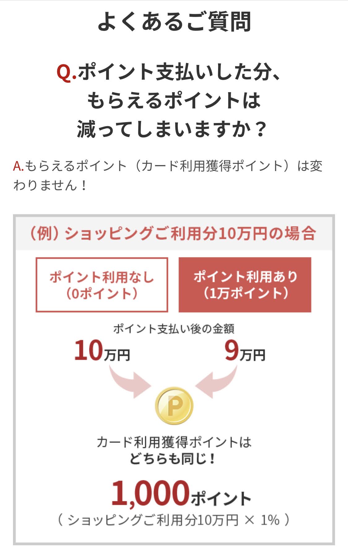 「ポイント支払いサービス」のよくあるご質問ページにも記載がありますが、このサービスを利用することで、ショッピング利用でのポイント還元を捨てることなく、無駄のないポイント利用ができるようになります。