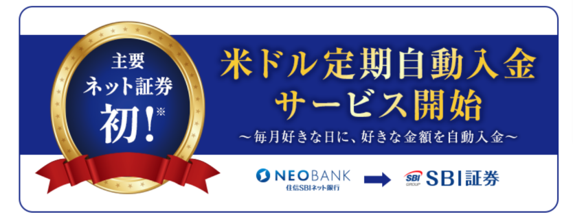 2022年6月3日(金)より、住信SBIネット銀行の外貨普通預金口座からSBI証券の米ドル外貨建口座に米ドルを自動入金できるサービスの提供が開始されました。