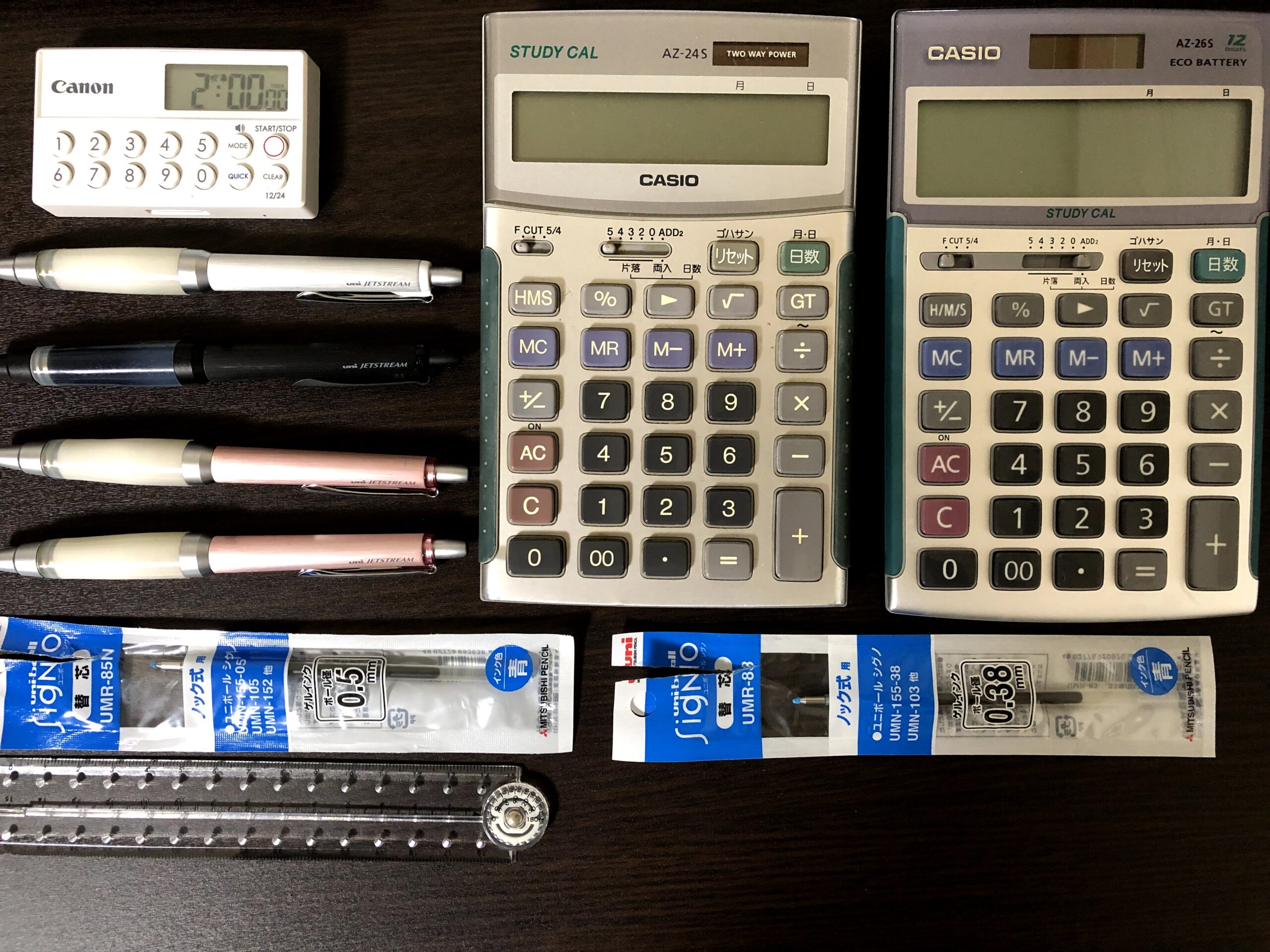 意識して行ったことといえば、電卓を同じキー配置のものを2つ持っていったことと、ボールペンを計算用・理論用と芯の太さを変えて各2本ずつ用意したぐらいでしょうか。
