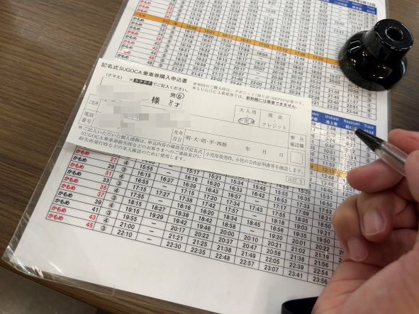 窓口での手続きとしては、記名式SUGOCA乗車券購入申込書に必要事項を記載し、娘のマイナンバーカードを提示するだけです。