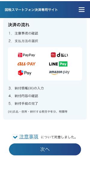 納付情報を入力し、「次へ」。