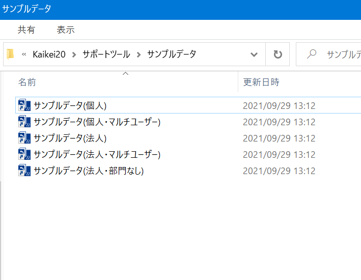 開いたフォルダの中から、「サンプルデータ」フォルダを開きます。