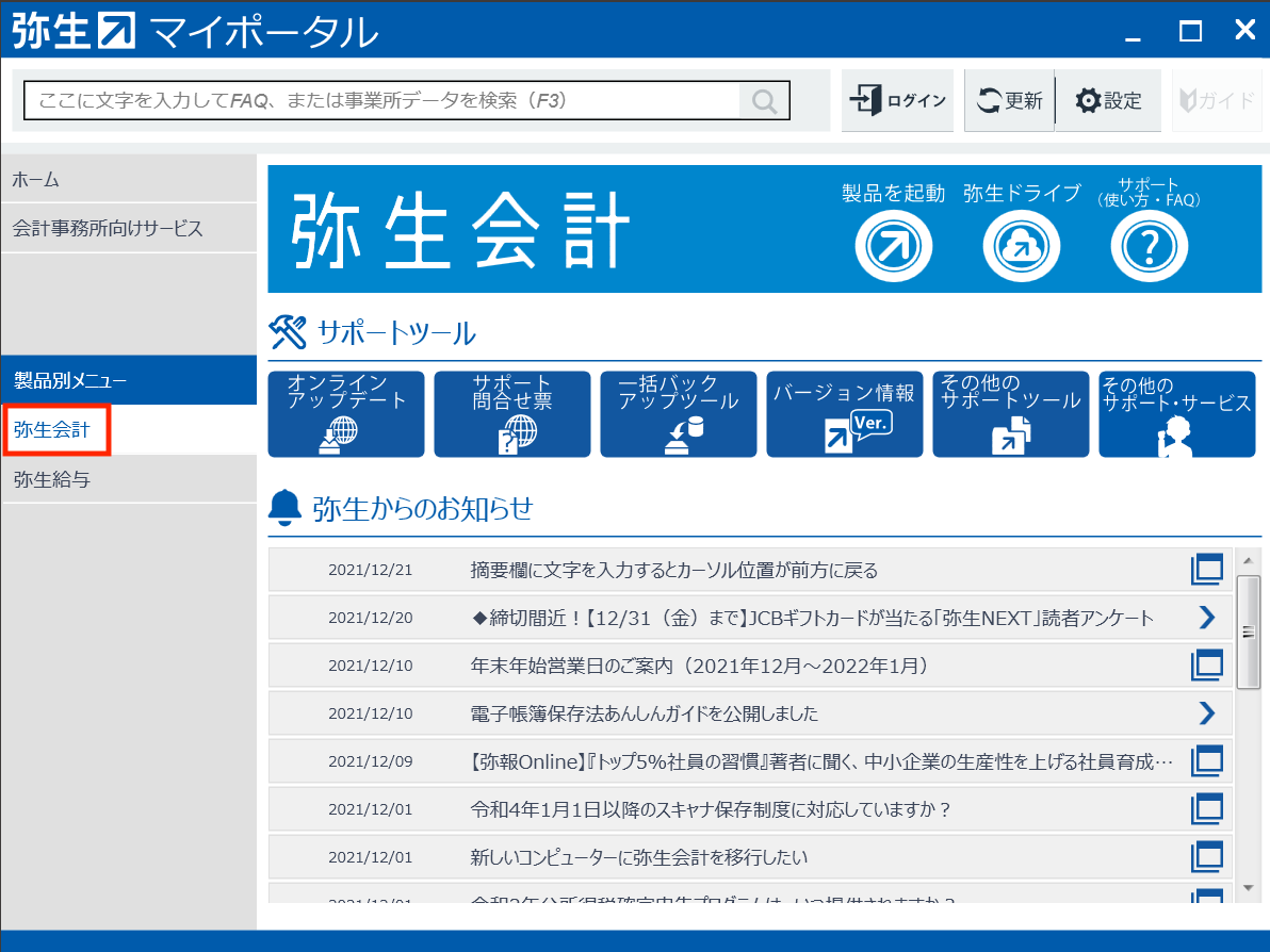 弥生会計を利用されていれば、同時に「弥生ポータル」というソフトがインストールされているはずです。